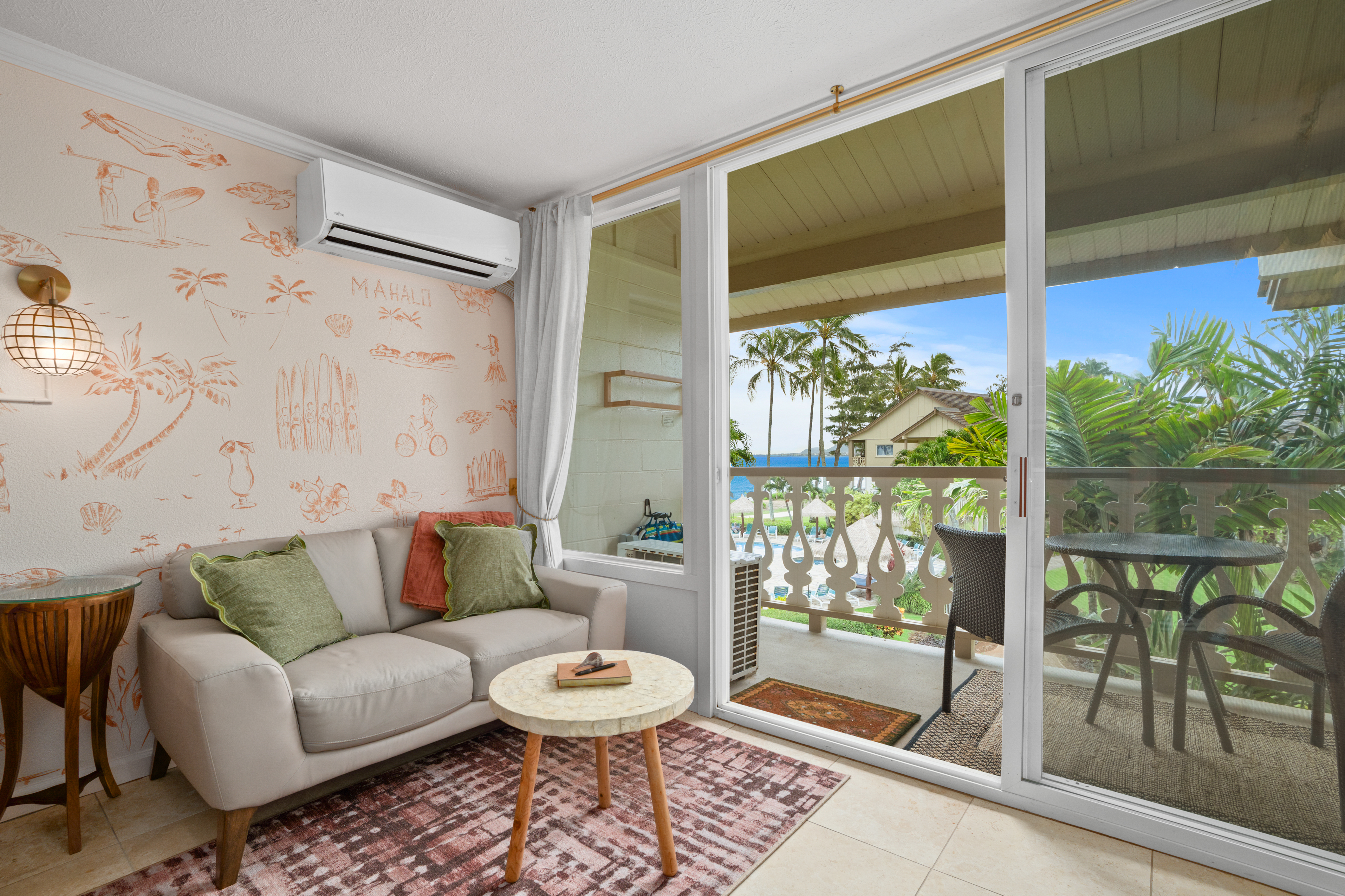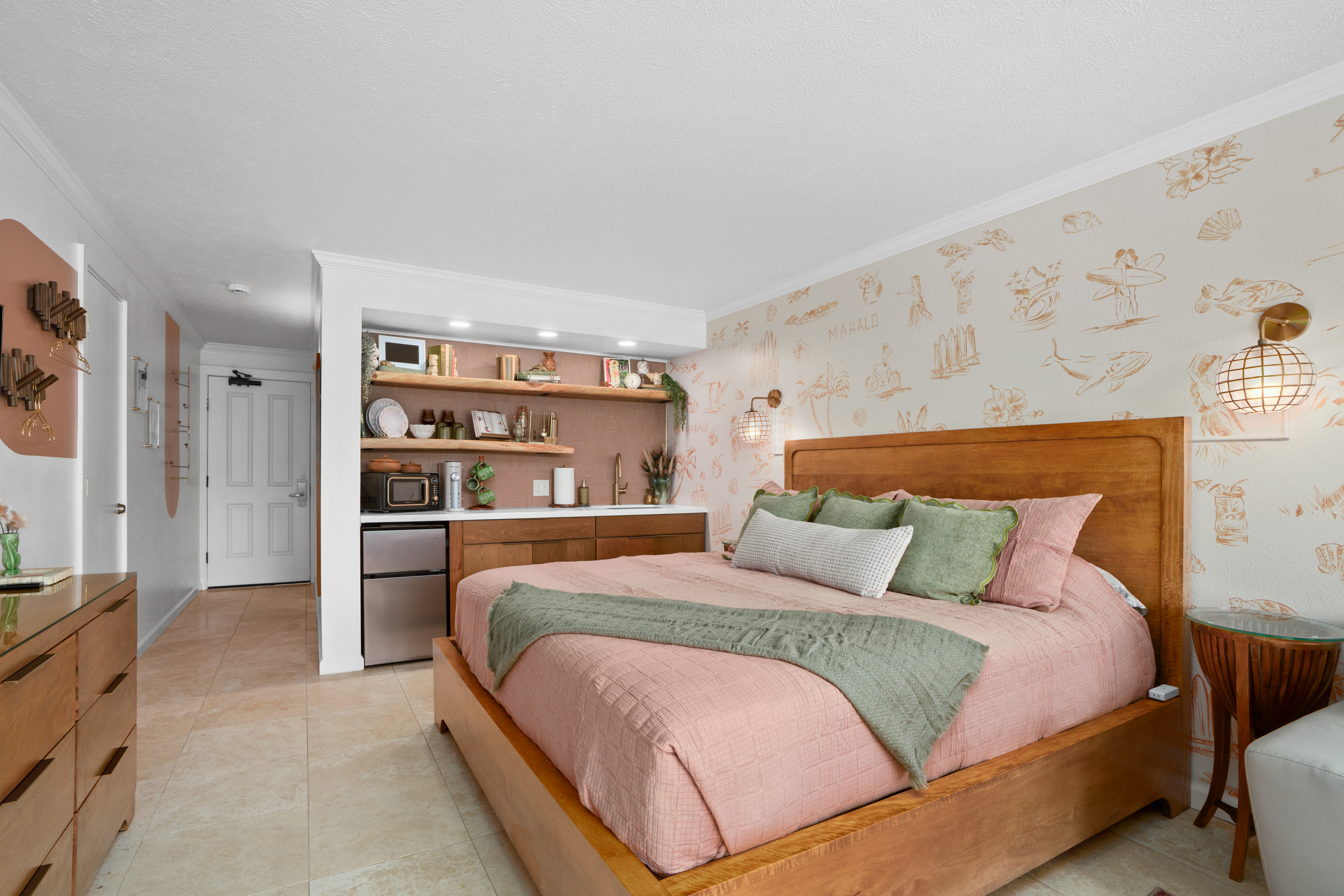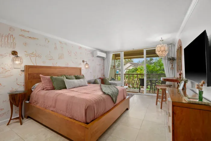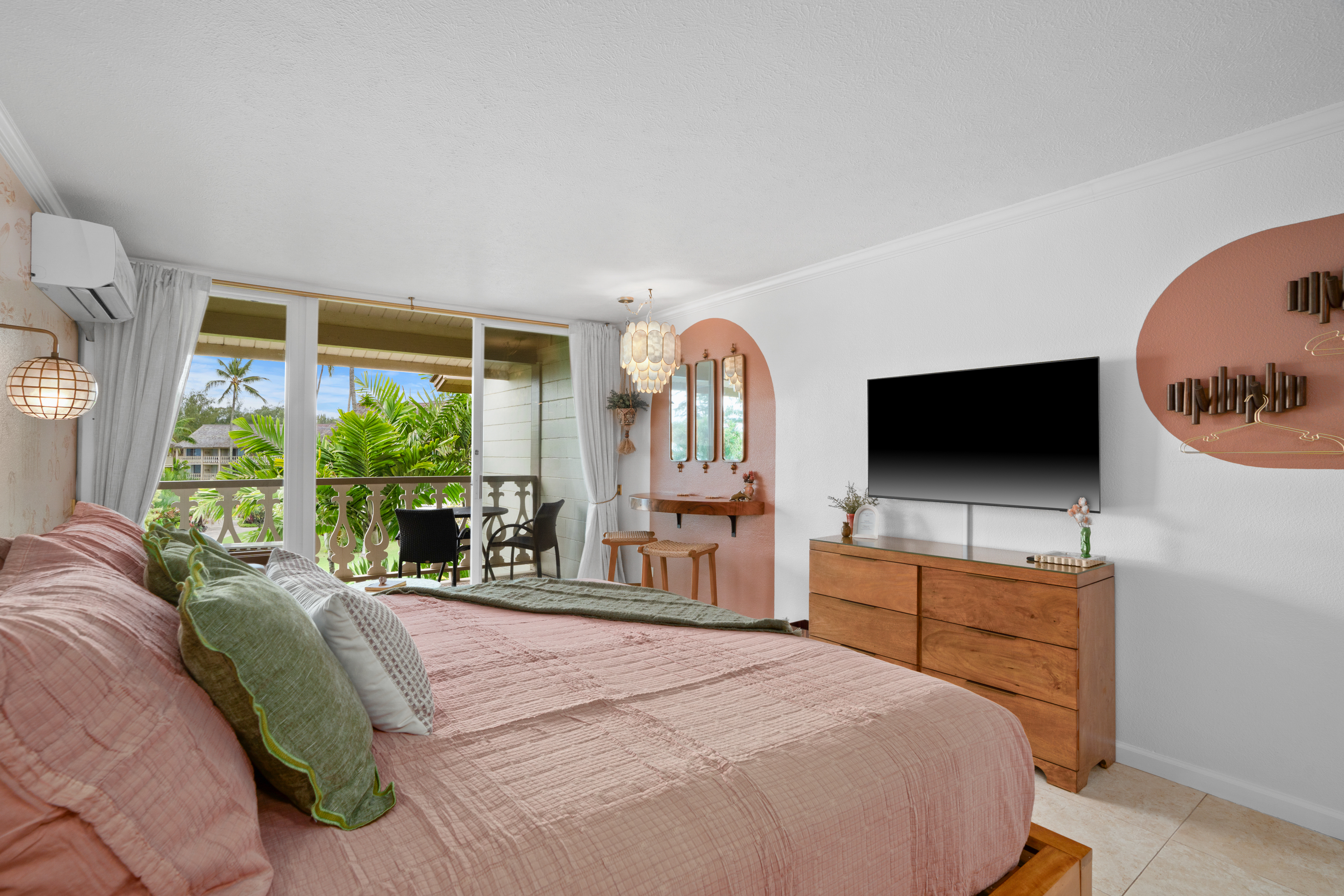 Our unit is located on the third floor of the Lanai building, giving you one of the best vantage points in the resort to overlook the pool area and ocean. The condo is a studio, 1 bathroom unit, with kitchenette. The unit sleeps 2 with a king sized bed. Plan to sleep comfortably on our Serta mattress, pillow top topper, and 100% cotton bed linens.